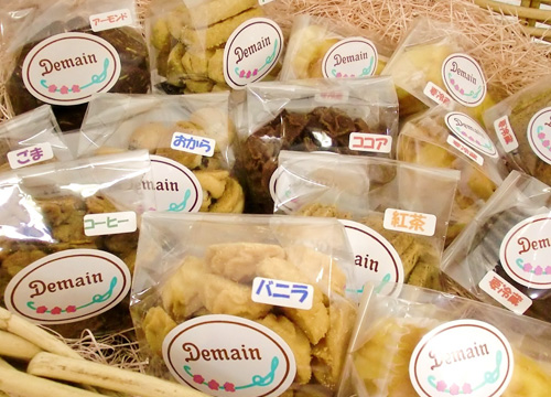 今回はプレーン、ラム酒、レーズン、オレンジ、チョコ、紅茶など6種類が並んでいました。クッキーは、一袋70グラムと手ごろなサイズ。風味を活かしながら食感にもこだわり形も味ごとに違います。こちらもおやつに手に取る方が多かったです。箱入セットは贈答品用としても人気があるそうですよ。