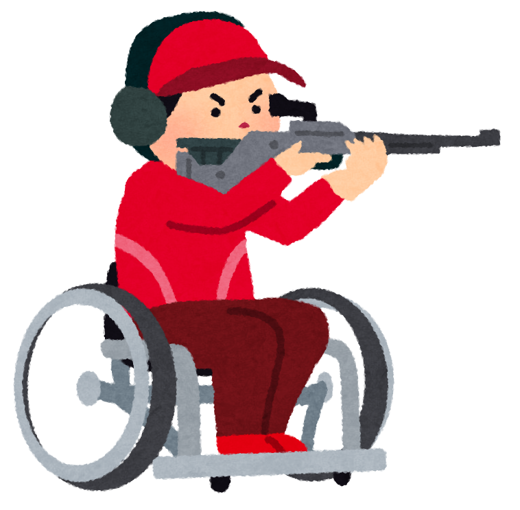 ただし、車椅子の選手は、立射を車椅子に座った状態で、伏射をテーブルに両肘をついた状態で、膝射はテーブルに片肘をついた状態で撃つなど、障害の程度に合わせて撃てるように配慮がなされています。