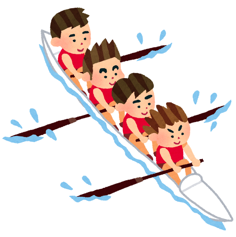 舵手つきフォアは、座席がスライドするボートを使って漕ぎます。膝を屈伸させる動作で漕ぎますが舵手の号令に従って、4人で呼吸を合わせて漕ぐため、5人のチームワークが速度を上げるには重要となります。
